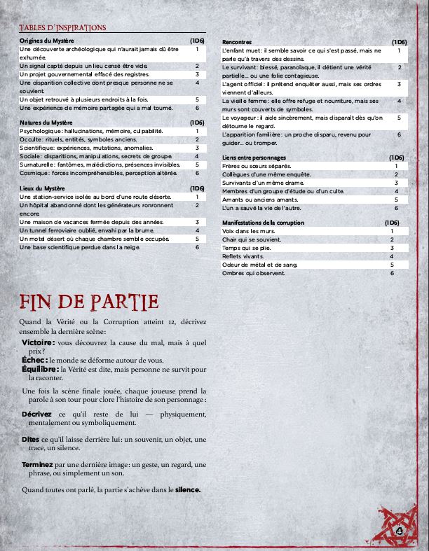 Chaque scène fait progresser soit la Vérité (vers la victoire), soit la Corruption (vers l’échec).